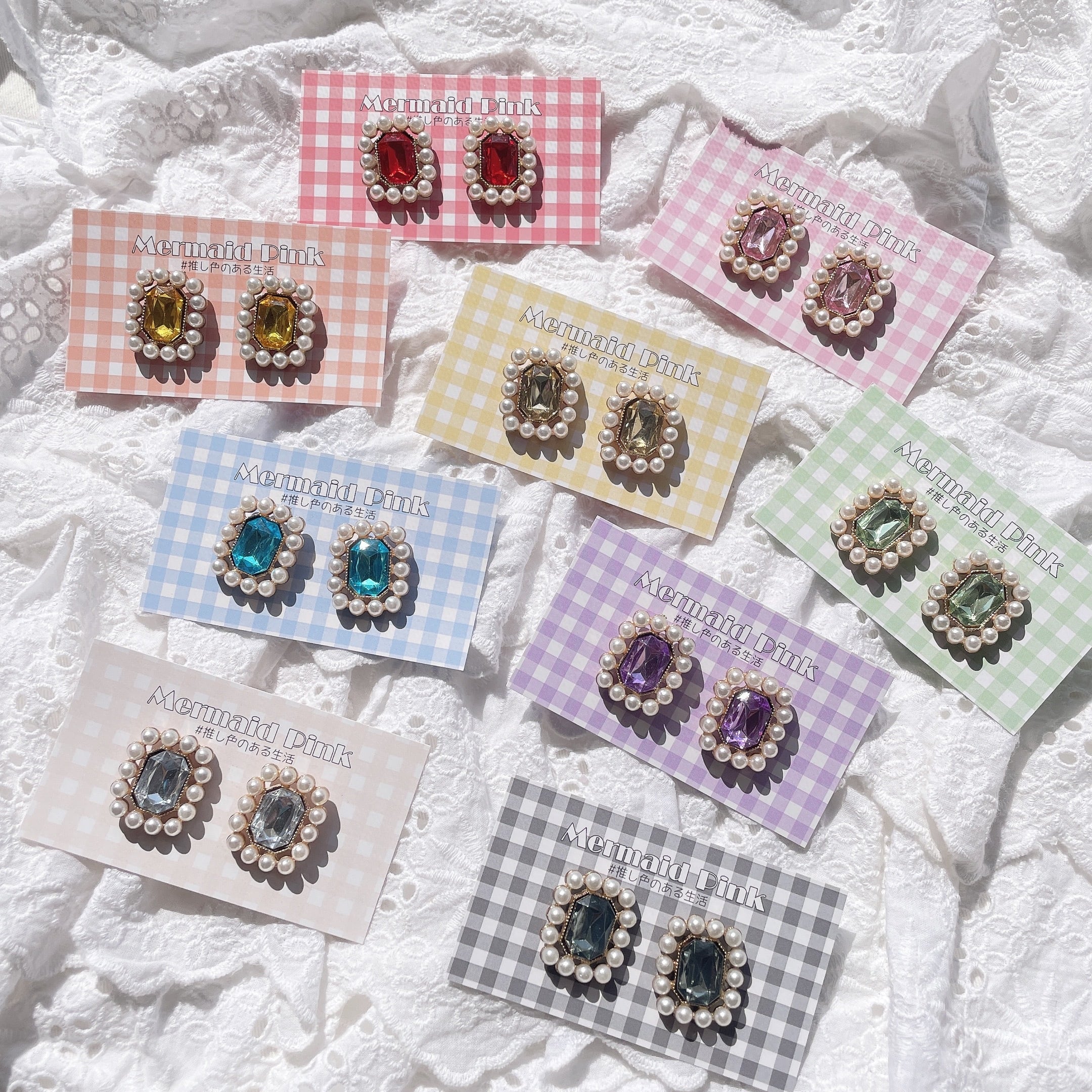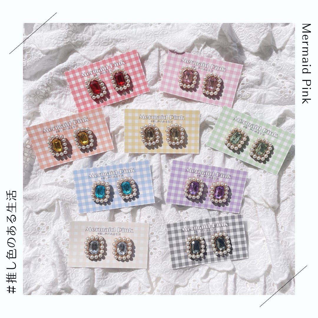 推し色キラキラパールピアス/イヤリング